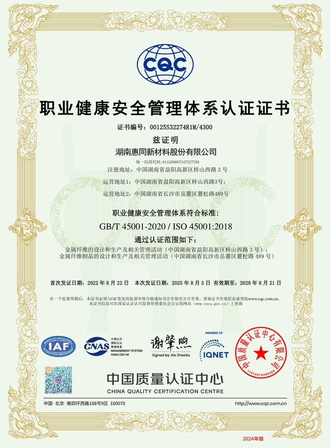 ISO45001:2018職業(yè)健康安全管理體系認(rèn)證證書